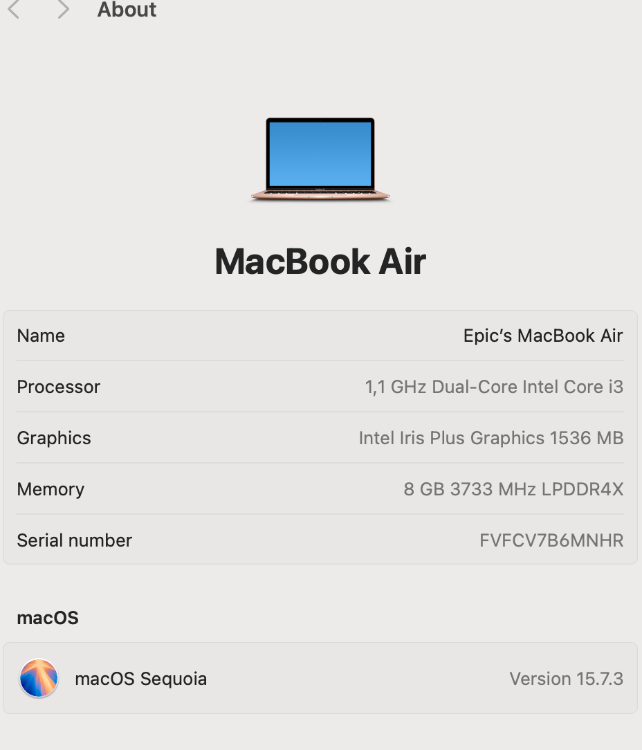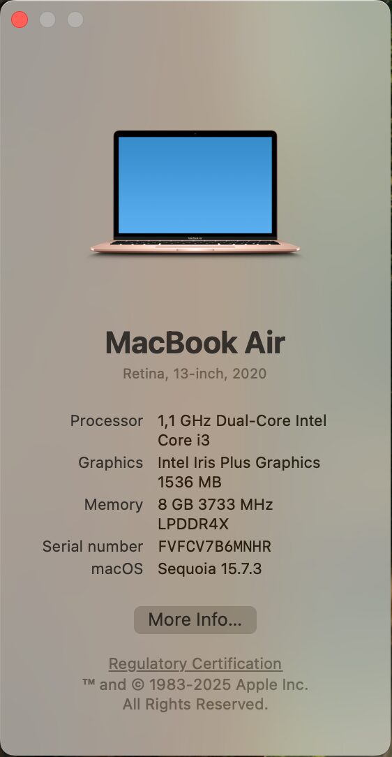 System Specifications: Powered by a 1.1 GHz Dual-Core Intel Core i3 processor for smooth multitasking, 8GB 3733 MHz LPDDR4X RAM for efficient performance, 256GB SSD storage for quick access, Intel Iris Plus Graphics (1536 MB) for crisp visuals, a 13.3-inch (2560 x 1600) display, and macOS Sequoia 15.7.3. Key highlights include ample RAM for secondhand buyers and a compact design perfect for on-the-go use in South Africa.