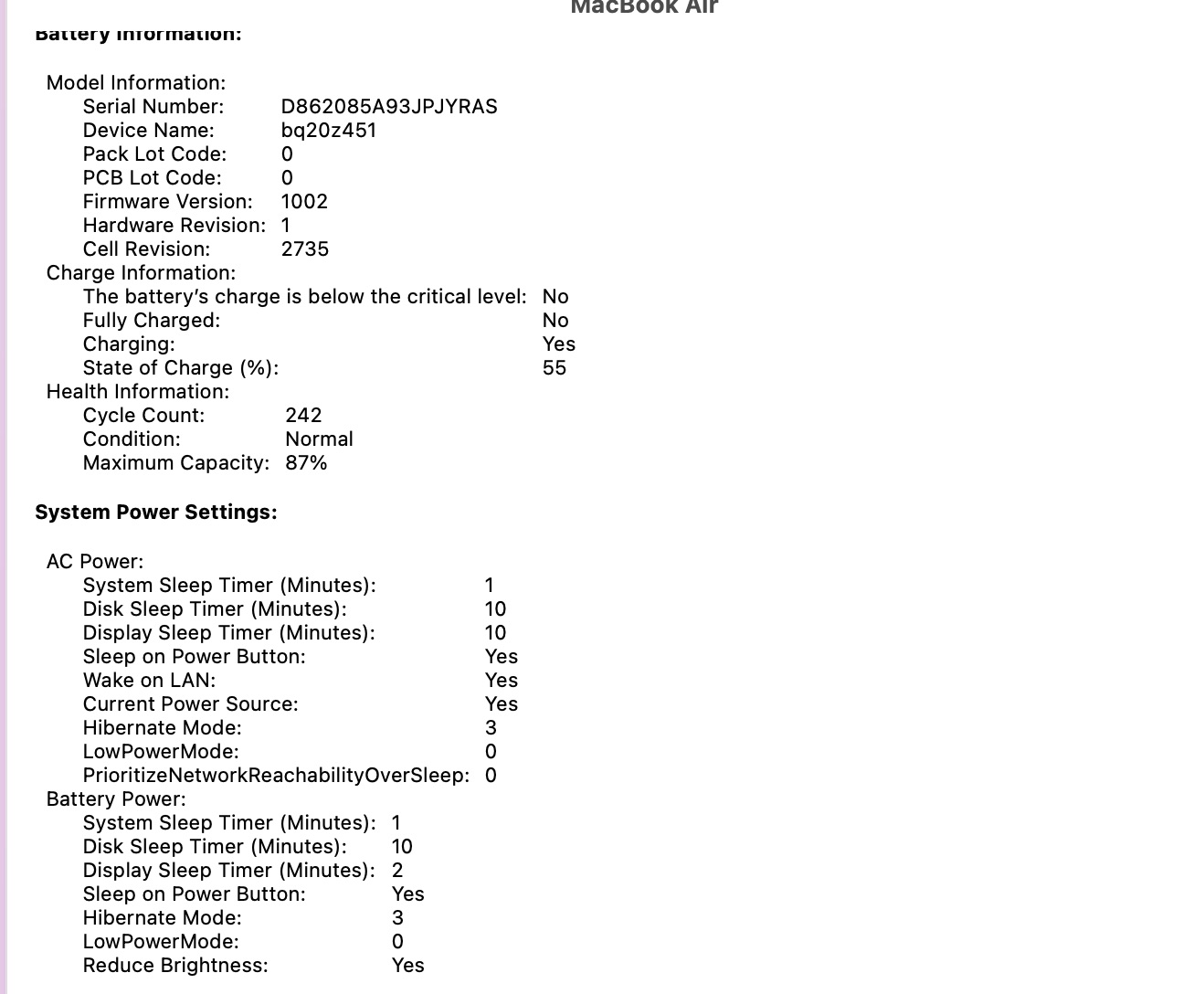 Battery: With a cycle count of 242. No major issues reported, but it may require charging more often during extended use.