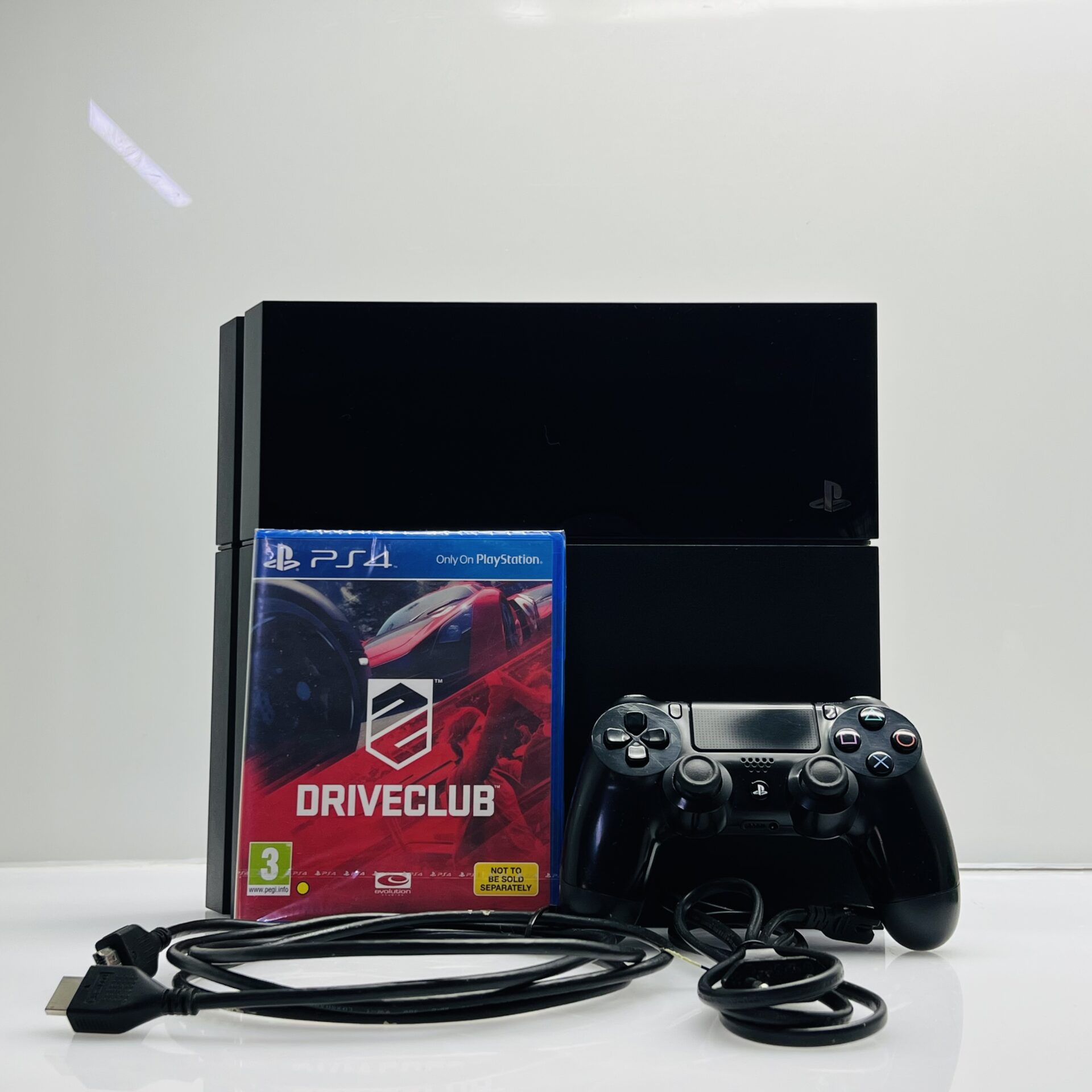 Accessories: Includes 1 x HDMI Cable, 1 x Power Cable, 2 x Controllers (one in black and one in blue), and 1 x sealed Game (DriveClub). A compatible charger is assumed included, but the box is not included.